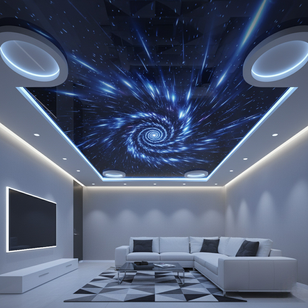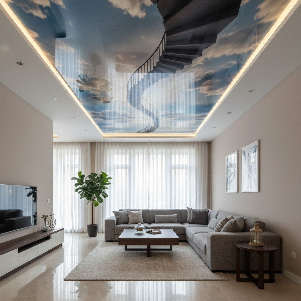 Натяжные потолки 3D – зрелищный и необычный декор вашего дома или общественного пространства. Вот лишь несколько причин, по которым заказывают трехмерный потолок.