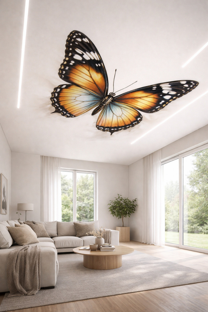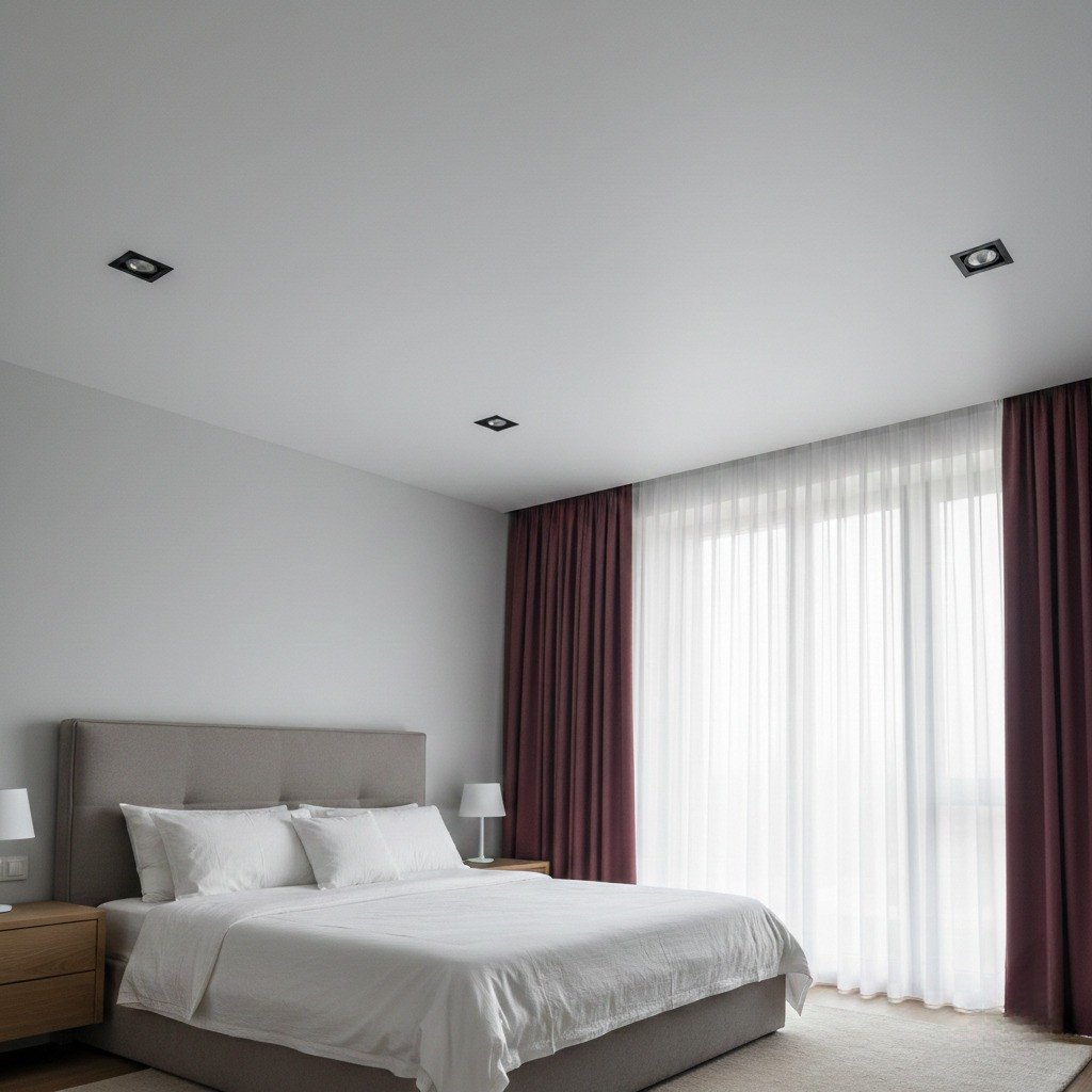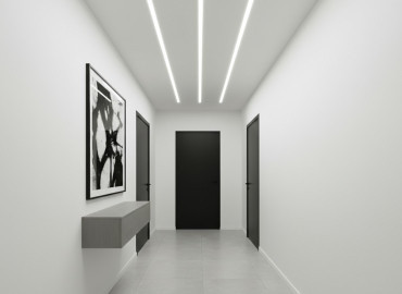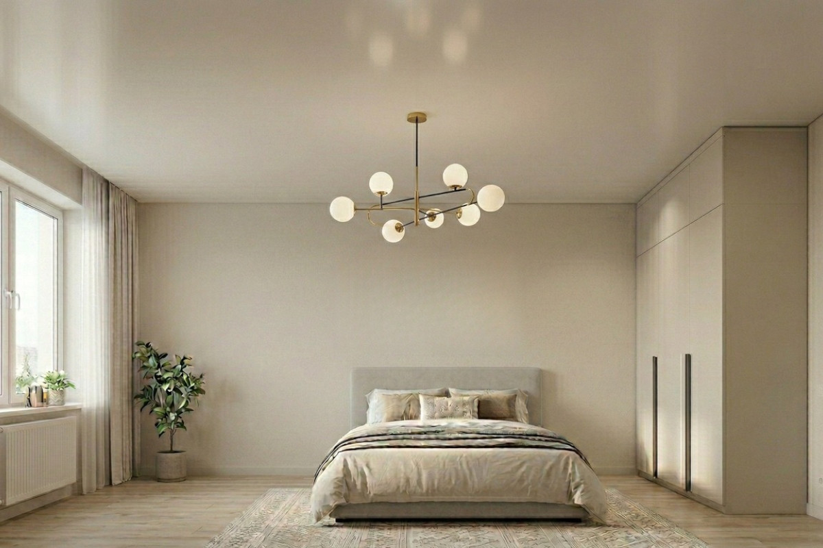 Любой вид освещения будет хорош с такой отделкой: от люстры, до точечных поворотных спотов, предназначенных больше для стены.
