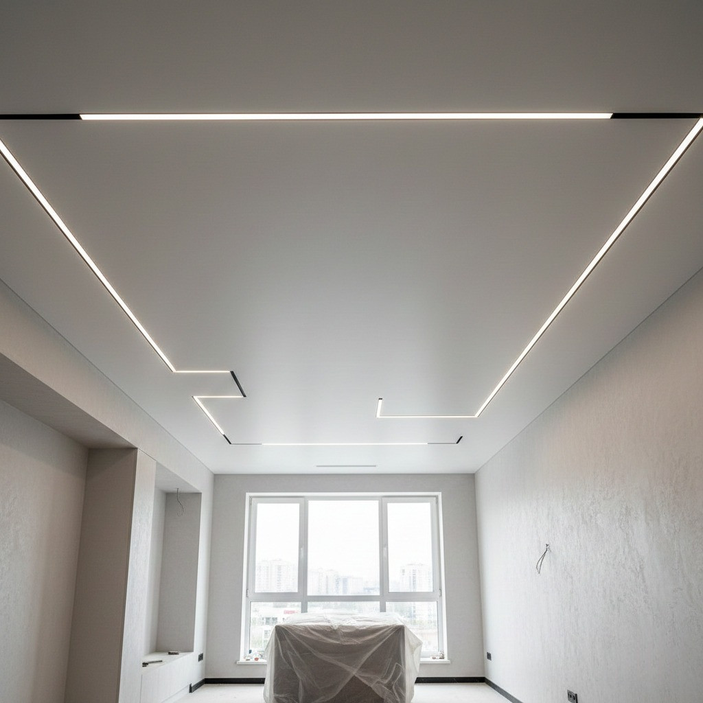 Конструкция бесщелевых натяжных потолков KRAABхарактеризуются очень плотным примыканием к стене. С появлением на рынке одноименного крепления стало возможным отказаться от маскировочных лент, потолочных плинтусов и других способов скрыть соединение стены и потолка.