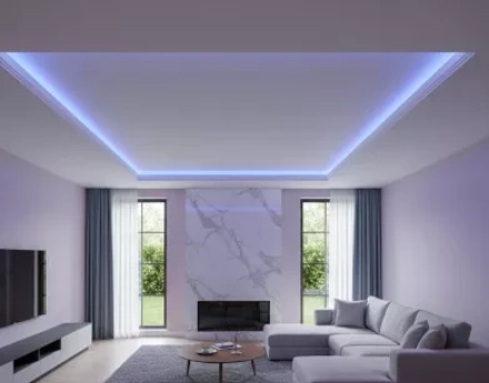 Тем, кому нравится нежный скандинавский стиль или изысканный минимализм, плюс важна защита от воды, присмотритесь к особому виду крепления натяжных потолков. С теневыми зазорами в ПВХ-пленке в белом цвете такие конструкции особенно хороши.