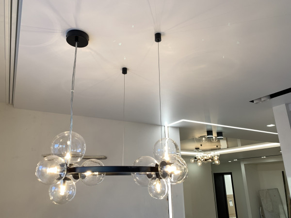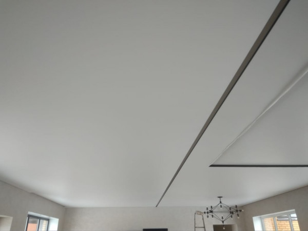 Сатиновые натяжные потолки — неброские, аккуратные, изысканные. В общественном пространстве или в спальне они будут уместны.