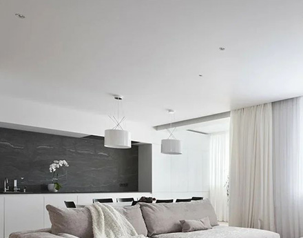 Для создания уюта дома лучше всего использовать матовые поверхности, которые также просты в уходе, не являются пылесборником и не собирают грязь. Протирайте их чистой несинтетической тканью для устранения пыли, а если на поверхности остались пятна, используйте влажную. Главное, избегайте абразивных веществ, способных поцарапать поверхность потолка.