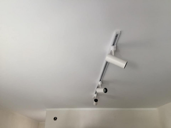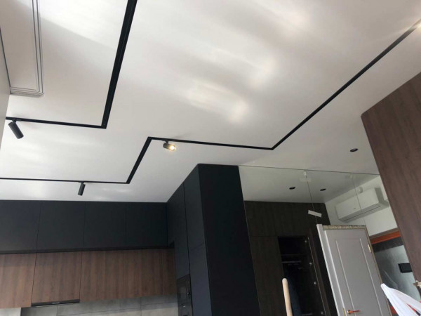 Демпферная система крепления позволяет быстро установить полотна с идеальными стыками, встраивать в них любой вид освещения: треки разного размера, точечные светильники.
